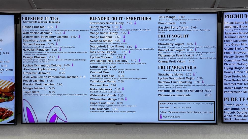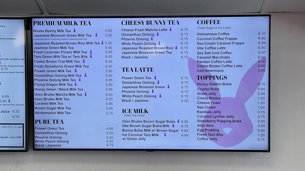 Boba Bunny Torrance Menu